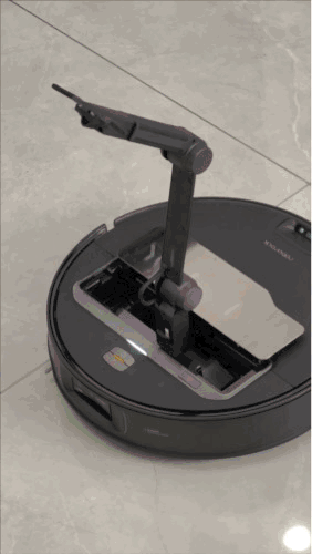 当我们自动启用这只机械手,或者是启用了“挪开再扫”模式之后,它就会正在得当的时候打开盖板,让机械臂伸出机舱。