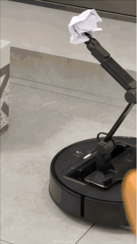 别的,保守的扫地机械人只能清扫比力小的颗粒和液体等垃,而新增的机械手则是带来了更大件物体的能力,好比说它可以或许拾起纸巾团等物体,精准地投入垃桶;亦或者是识别到袜子手套等小件的物体,到标识表记标帜的区域,应对了不少本来需要躬身洁净的小情况。