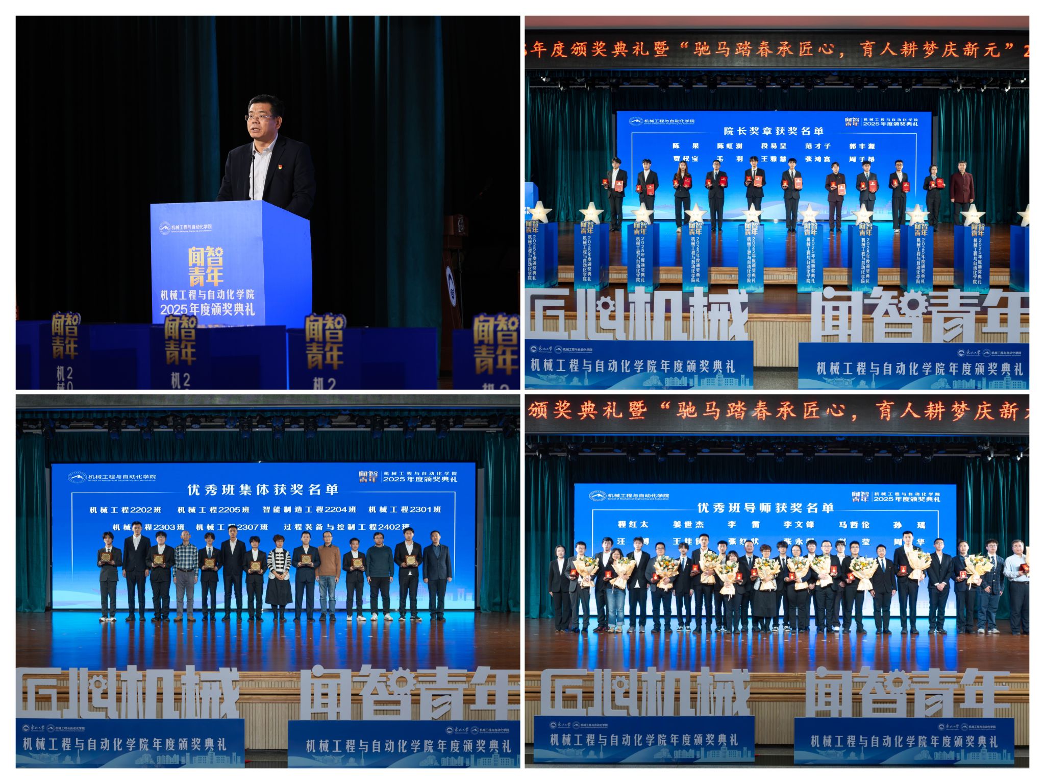 学院党委郝建山正在致辞中系统回首了一年来学院取得的主要成绩。学院积极办事国度计谋,投身深度金属矿智能开采纳配备全国沉点尝试室扶植,并正在环节科研范畴实现标记性冲破,获得国度严沉专项支撑。同时,学院成功引进增材取激光制制范畴领军团队,为久远成长奠基根本。正在人才培育方面,学院学子表示凸起,研究生学术丰盛,正在“挑和杯”“中国国际大学生立异大赛”等多项赛事中斩获国度级项,结业生就业率持续连结高位,展示了全面成长的优良素养。郝建山阐释了“闻智青年”品牌的育人内涵,勉励全体师生胸怀“国之大者”,将小我成长融入“制制强国”计谋,过硬本事,怯于立异创制,勤奋成为担任平易近族回复大任的时代新人。副院长罗忠表扬决定。颁环节分三轮顺次进行。起首颁布的是“院长章”,刘云飞为毛羽等10名正在专业进修、科技立异、社会实践等方面表示杰出的学生颁布章。随后颁布“优良班集体”项,班导师代表为7个正在班风、学风及凝结力扶植中成效显著的班级颁。最初,仪式聚焦育人一线论理学生代表向获评“优良班导师”的教员们献上鲜花取荣誉证书,表达诚挚感谢感动。“院长章”获得者代表毛羽连系科研竞赛取意愿办事履历,讲述了“道阻且长,行则将至”的成长;“优良班集体”获代表豆煜轩分享了班级凝心聚力、共建优秀学风的活泼经验。正在“闻智匠心 共话青蓝”出格环节,优良班导师马哲伦取所带班级学生代表刘定佳同台交换,从分歧视角展示了师生间思惟引领、学业互帮、讲授相长的温情互动,彰显了育人一线的深挚交谊取结实成效。据悉,“闻智青年”是机械工程取从动化学院出力打制的文化育人品牌。本次颁仪式既是年度的集中展现,激励朝上进步的主要平台,旨正在指导全体学生以先辈为楷模,坚想、夯实专业根本、锻制立异能力,勤奋成长为具有家国情怀、全球视野取创制活力的杰出工程人才,为学校“双一流”扶植和高质量成长注入芳华力量。