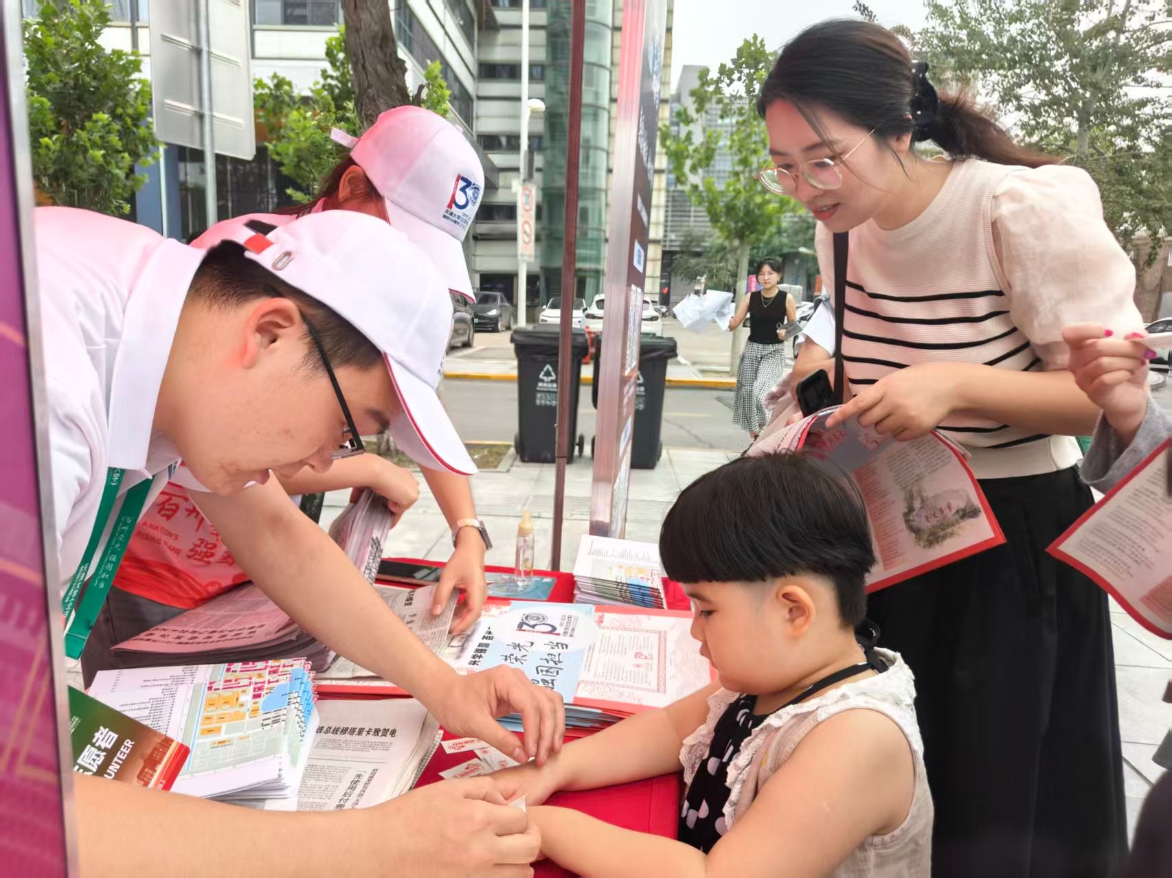 北洋广场上,两位意愿者熟练地将提前预备好的《校报·校庆特刊》以及登载有130年事业成长成绩的折叠,发放给每位回校的校友。意愿者们,是校庆当天另一道靓丽的风光。