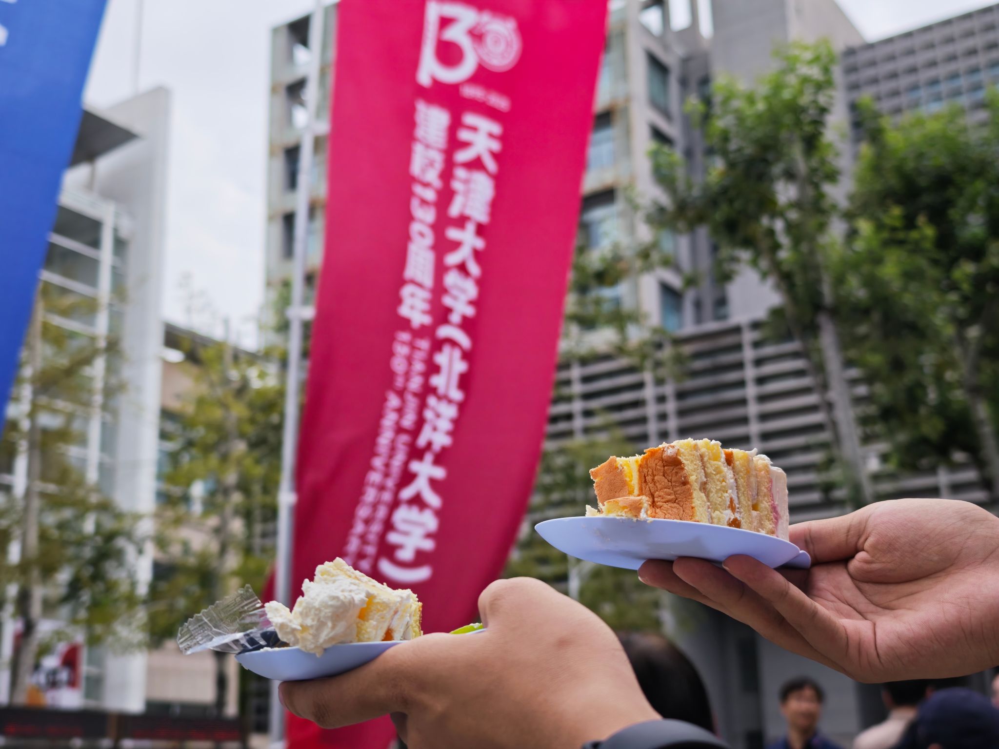 材料学院孔梦瑶同窗正在竹园和同窗们一路分享了巨型校庆蛋糕,她高兴地说,“甜正在嘴里,更甜正在心里。这块蛋糕,是一群同频的人,正在统一时辰,共享的一份简单幸福。”。